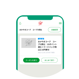 さらに、あなたがアプリのクーポンを1回利用するたびに、参加事業者から子ども食堂などの食支援に取り組むフードバンク岡山に10円が寄付されます。