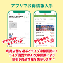 アプリでは5分ごとの売場ライブ画像+AI文字認識による値引データが配信されるので、売場の値下げタイミングを逃さずチェックできます。(※)