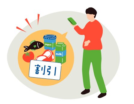 消費期限が近い割引商品は売れ残ると廃棄されてしまいます。割引商品を選ぶだけで地球にもやさしいお買い物になります。